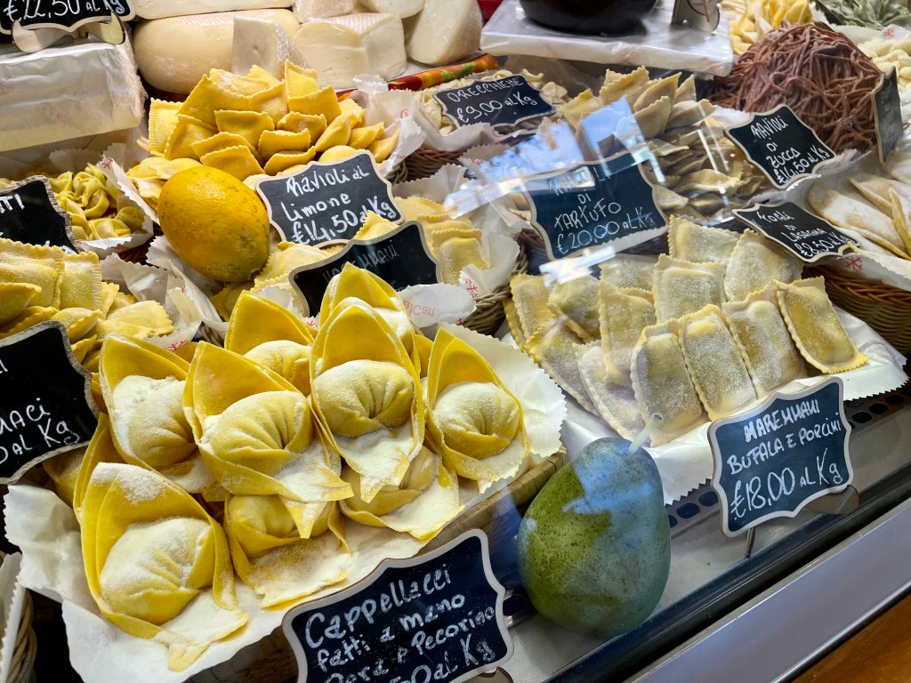 Just thinking about the market makes me smile: the heaps of brightly coloured fruit and vegetables, big sacks of beautiful beans and lentils โ oh and the pasta, the fresh pasta! It all looks so beautiful!