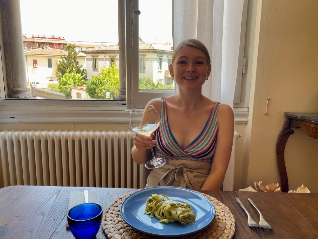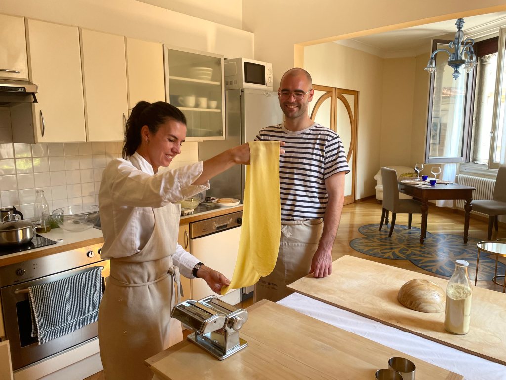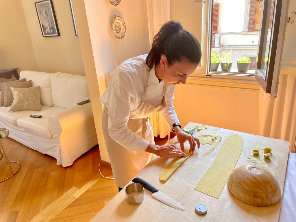 Throwback to a sunny Monday morning in Florence back in July. My boyfriend and I are on our way to Paola Muñoz, a professional chef and cooking teacher, for a three-hour pasta and Tiramisù class. On holidays and ready to explore the city, we found her class via Airbnb experiences. We were delighted by the idea to spend the beginning of the week in such a lavish, delicious, and fun way to learn about Italian cuisine. The class takes place at Paola’s apartment, a beautiful, light and lofty space. When we enter, the wooden table is already prepared. I can spot eggs, mascarpone, sugar, flour, Datterini tomatoes, and a pasta machine. A Basil plant with large, full leaves in the back looks promising. Paola welcomes us to her home and explains the menu of the day: Cappelletti with a spinach and ricotta filling in a tomato sauce, hand-made tagliatelle with pesto Genovese, and finally a Tiramisù for dessert. A straightforward menu, and yet there is lots to do. We put on our aprons and roll up our sleeves. Showtime! While we prepare the Tiramisù and the pasta dough, we learn about Paola’s background, career, and how she came to teach.