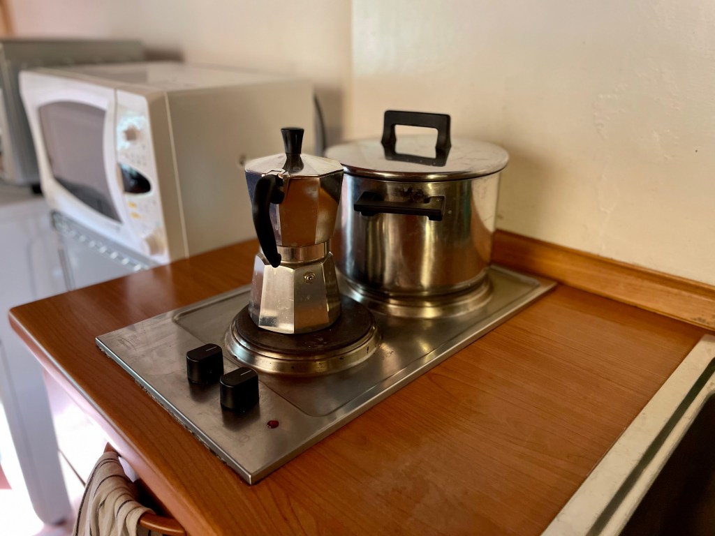 our stove – the Bialetti Moka gives away the small size of the stove plates