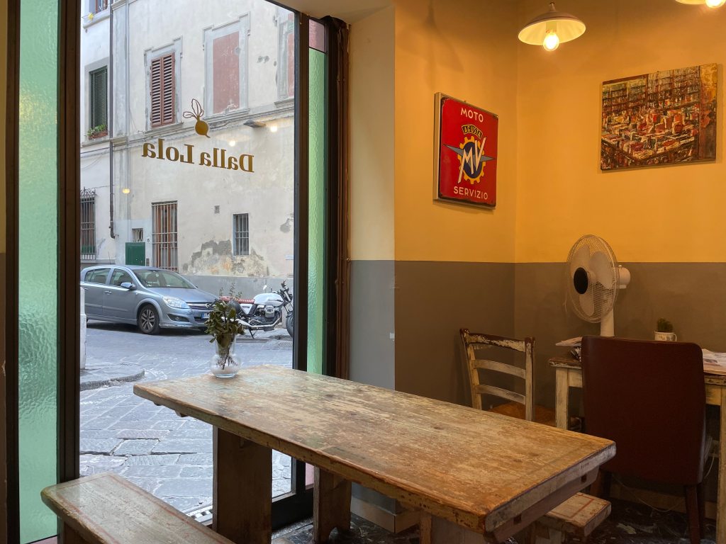 It’s a sunny and mild Wednesday morning. I am sitting with Matilde Pettini inside her restaurant Dalla Lola, near the Piazza Santo Spirito. The space is cosy. Mint and warm cream colours and large wooden tables set the scene for a friendly and communicative atmosphere. The first guests are arriving to slowly start their day with coffee and home-baked sweets.