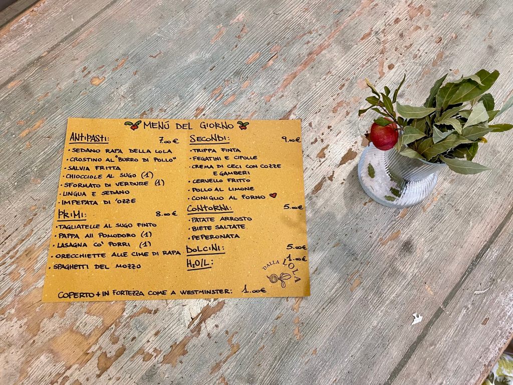 Dalla Lola is a place where everyone talks at eye level. Matilde explains: “you give something to a friend and have the chance to teach them about food”. The prices are low. Antipasti cost seven euros, Primi eight euros, and Secondi nine euros. Matilde wants everyone to be able to afford her food, to make Dalla Lola the social and intimate place that it is.