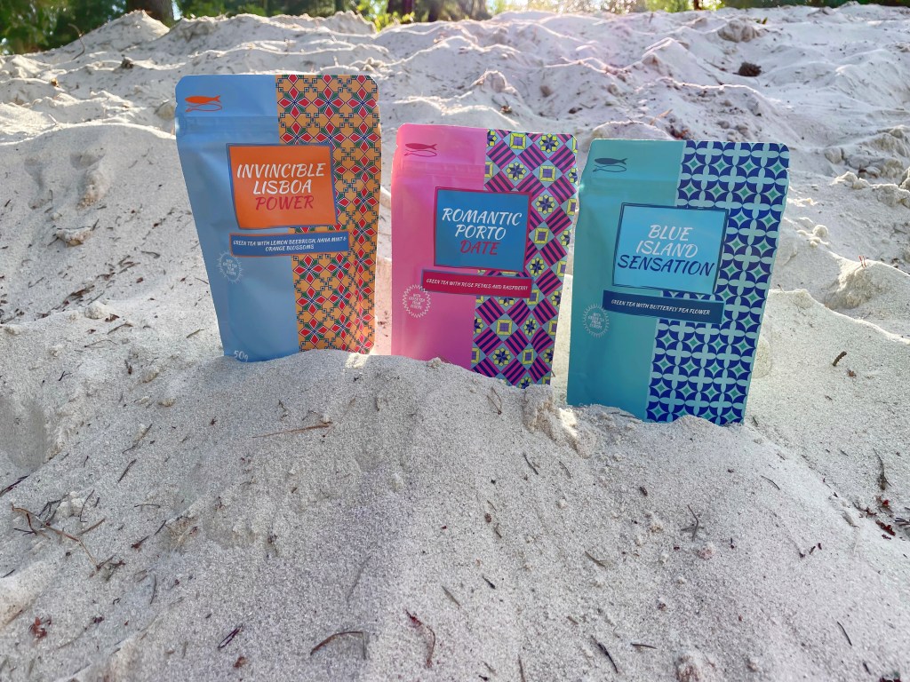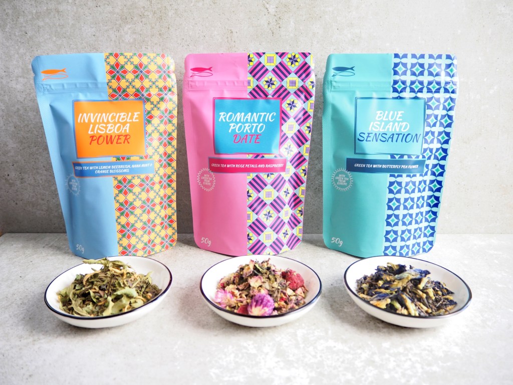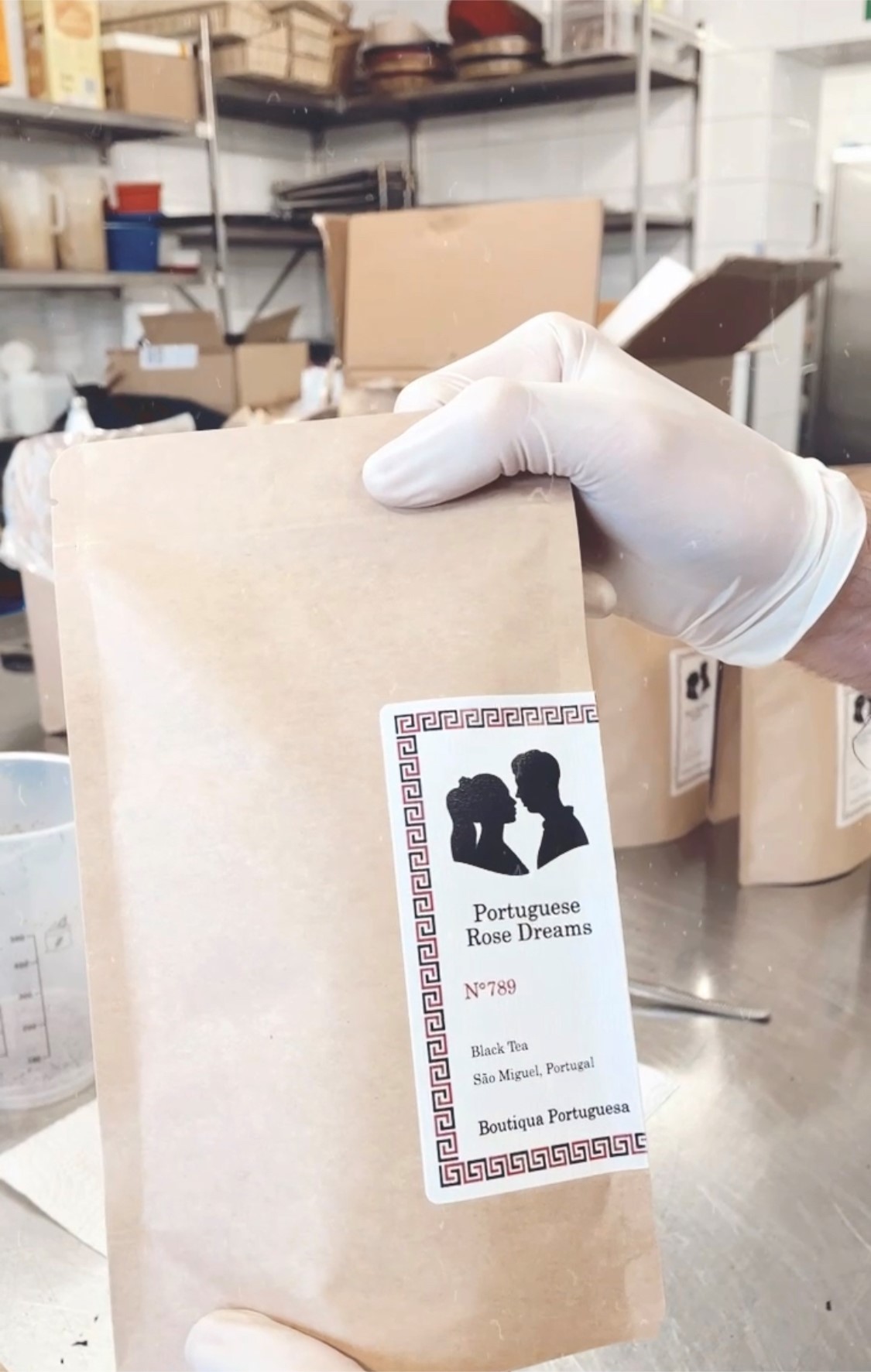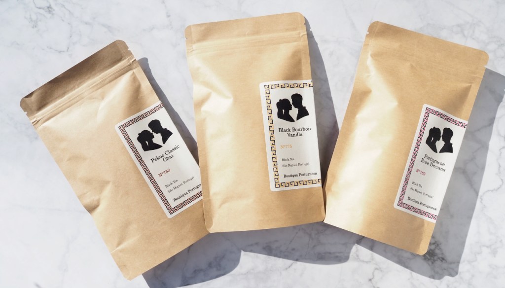 The two import Azorean tea and combine it with ingredients such as pink pepper, cardamon, ground ginger, rose petals, and clove. They mix the tea and spices in a local industrial kitchen. Giuseppina is responsible for the teas’ flavour profile and likes to play with flavour combinations. So far, they have produced three types of green tea, wrapped in brightly coloured packaging. Where did the inspiration for the design come from? From Portuguese tiles, they respond, the so-called Azulejos. Their tea endeavour didn’t stop there. The young couple just launched five flavours of black tea: Dark Azorean Pekoe, Dark Orange Pekoe, Pekoe Classic Chai, Black Bourbon Vanilla, and Portuguese Rose Dreams. The packaging is inspired by a different type of Portuguese tiles, named Calçadas. In the future, the two dream to create even more products and sell them internationally at Boutiqua Portuguesa